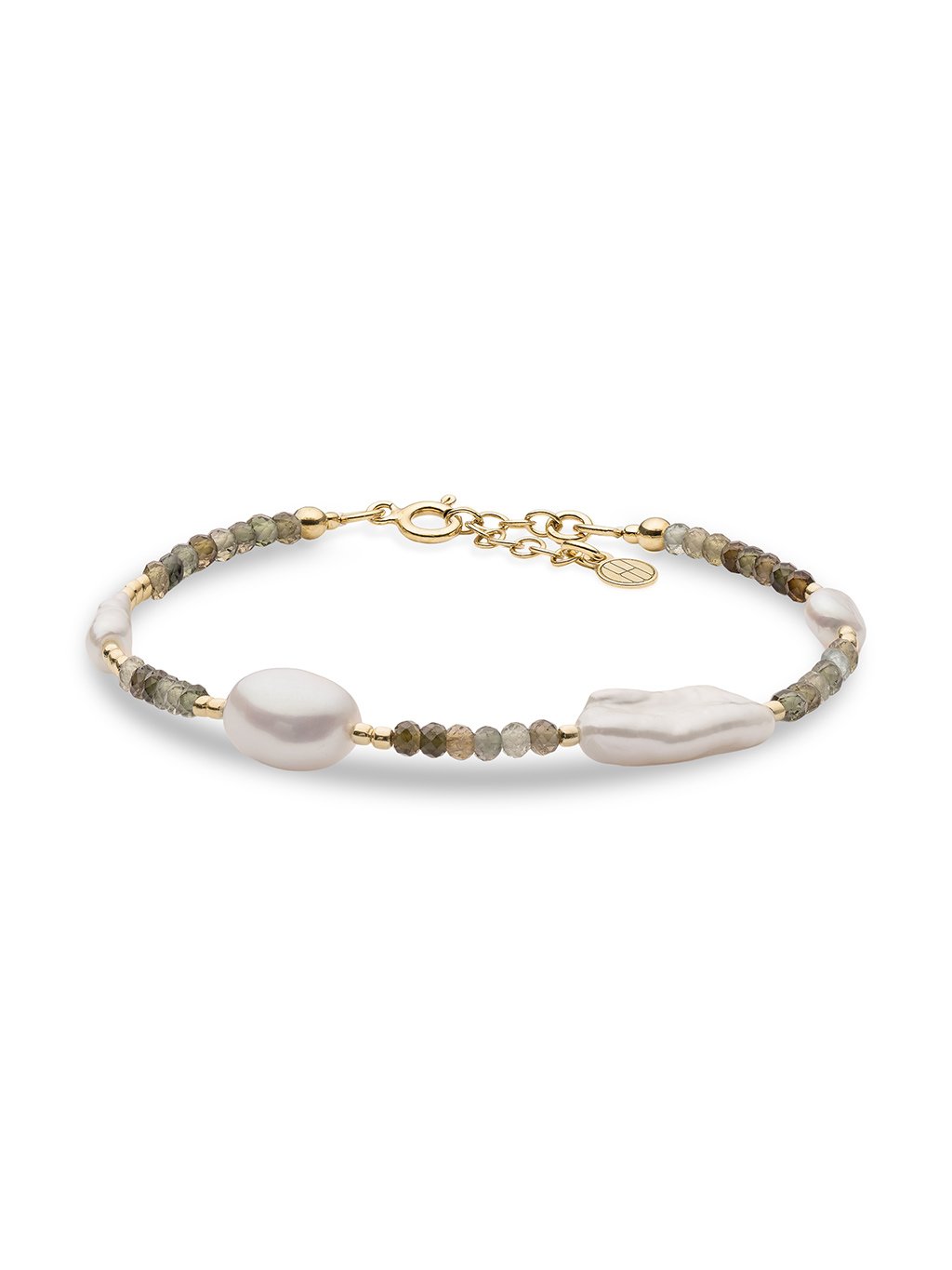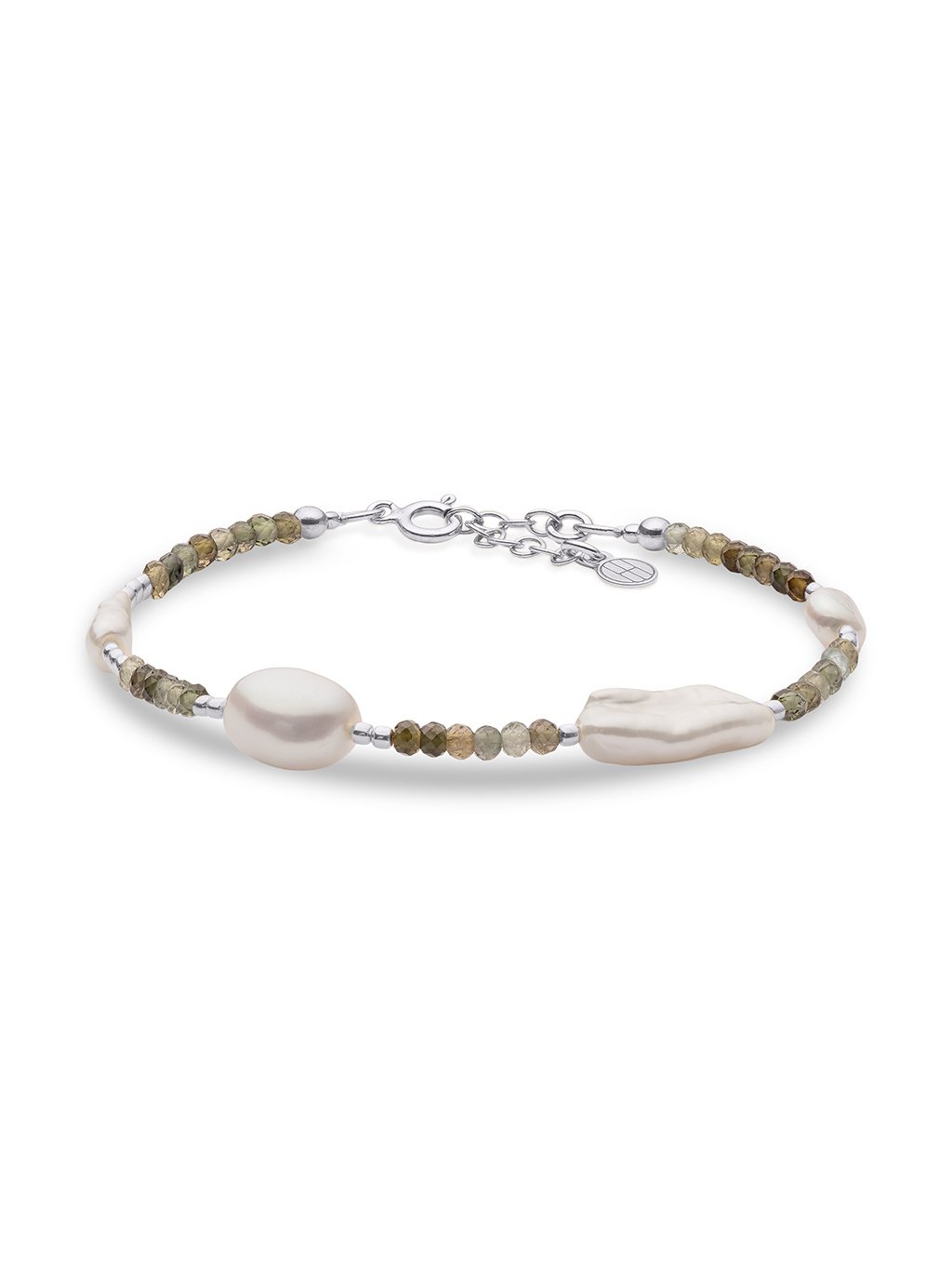 Příběh a popis šperkuNáramek Euphoria z nádherného zeleného turmalínu, proložený perlami v různých tvarech. Každý detail perly je jedinečný, každý tón zelené je jiný – dohromady ale vytvářejí šperk, který působí svěže a nese v sobě radostný náboj.