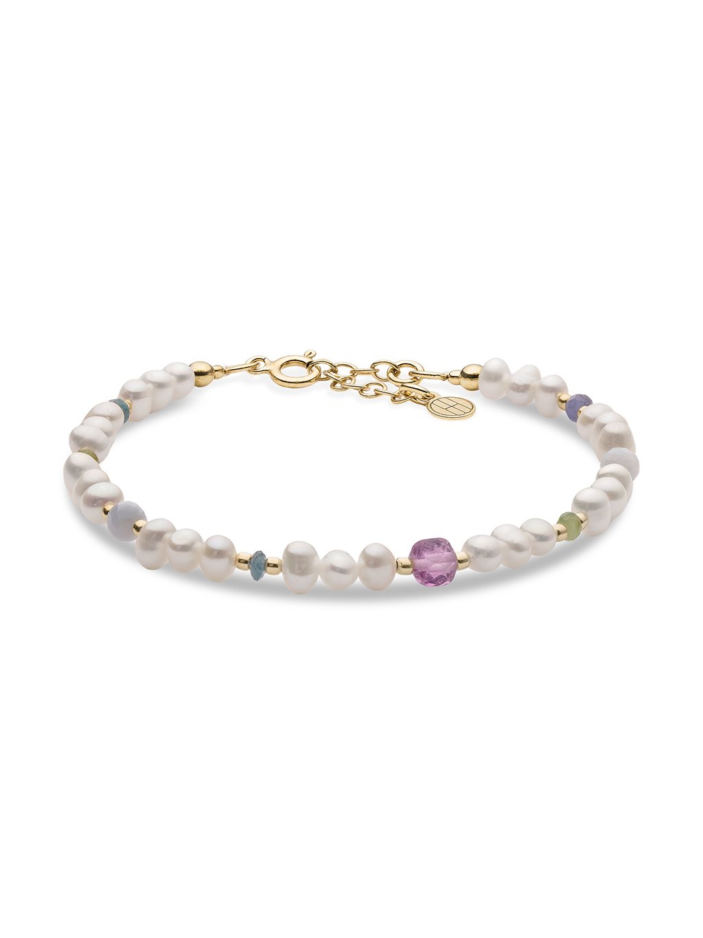 Příběh a popis šperkuNáramek z perel a barevných drahých kamenů poskládaný jako malá sbírka tvarů a odstínů. Náramek Iris je šperk inspirovaný radostí z barev a spontánností.