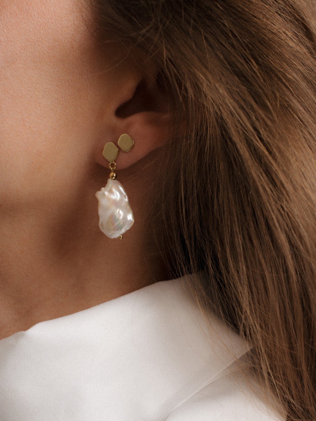 Příběh a popis šperkuTvar náušnic vychází ze stínu drobných organických perel. Horní část zachycuje jejich jemný obrys, zatímco výrazná keshi perla pod nimi nechává vyniknout jejich přirozenou kresbu a hru světla. Pro ty, kdo mají blízko k jemnosti i osobitosti v jednom šperku.